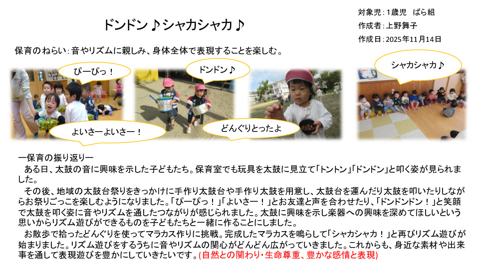 - #上野舞子 #ばら組 #1歳児 #音楽 #散歩 #表現 #自然との関わり・生命尊重・豊かな感性と表現