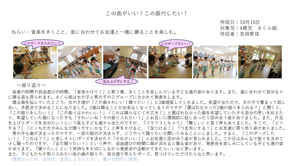 - #吉岡愛佳 #さくら組 #4歳児 #音楽 #表現 #その他 #健康な心と体・協同性・言葉による伝え合い・豊かな感性と表現