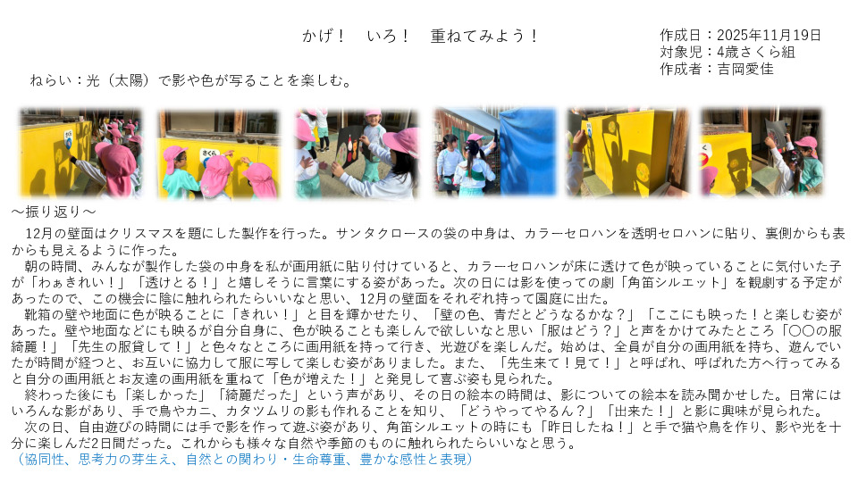 - #吉岡愛佳 #ふじ組 #5歳児 #表現 #その他 #協同性・思考力の芽生え・数量・図形・文字等への関心・感覚