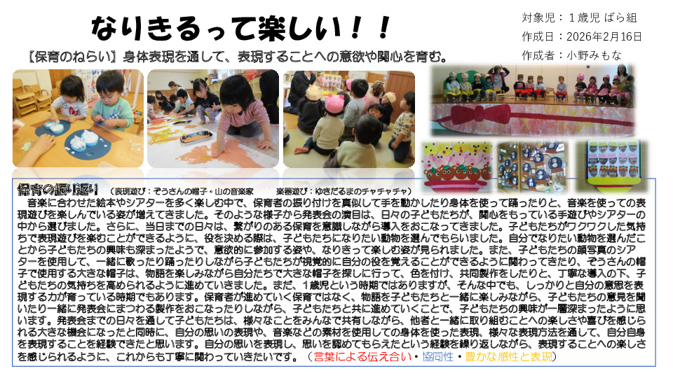 #小野みもな #ばら組 #1歳児 #音楽 #表現 #協同性・言葉による伝え合い・豊かな感性と表現