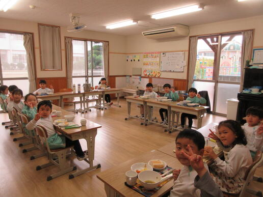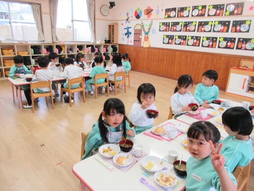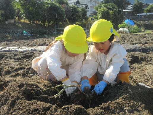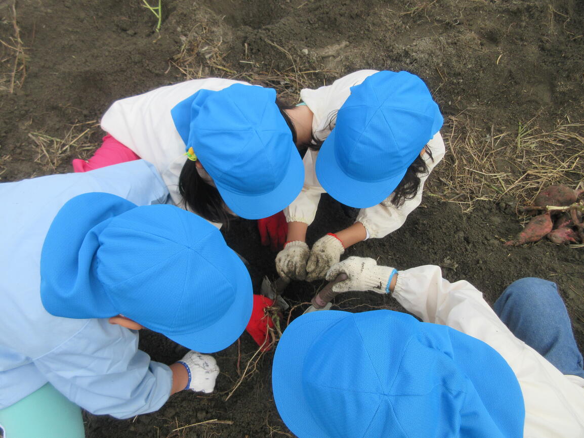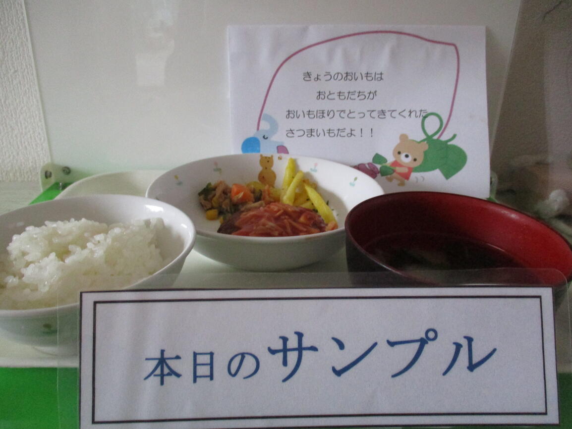 年中児さんと年長児さんが一生懸命掘ったさつまいもを使ったメニューが提供されました。「自分たちが掘ったお芋だ!」と喜んで探したり、美味しそうにパクパク食べたりする姿がありました。 子どもたちにとって、食べ物の大切さや、食事ができることへの感謝の気持ちを育む、貴重な体験となりました。畑を提供してくださった星川さん、芋掘りに参加した保護者の方々、そして美味しい給食を作ってくださった先生方、本当にありがとうございました。